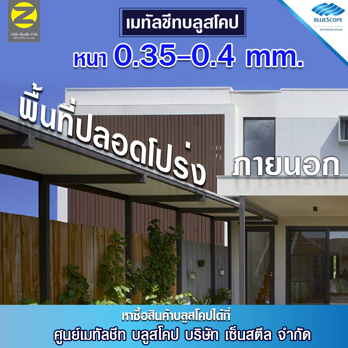 เมทัลชีท หนา 0.35-0.4 mm เหมาะกับพื้นที่ปลอดโปร่ง ภายนอก