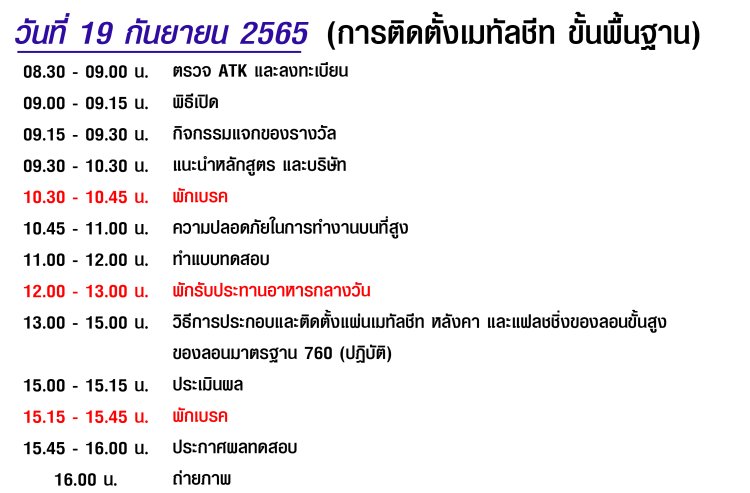 กำหนดการเข้าร่วมการอบรม