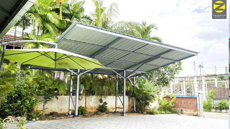 โดย zen steel นำตัวอย่างโรงจอดรถเพิงหมาแหงนของคุณปลา สุรชาติ เชาวน์วัฒนา หนึ่งในลูกค้าของ zen steel มาแชร์เป็นไอเดียกันค่ะ ซึ่งโครงสร้างโรงจอดรถของคุณปลาจะใช้เป็นโครงสร้างเหล็ก และเลือกใช้เมทัลชีทของบลูสโคลปเป็นส่วนของหลังคา มีพื้นที่ในการใช้สอยประมาณ 6 เมตร สามารถจอดรถได้ประมาณ 3 คัน
